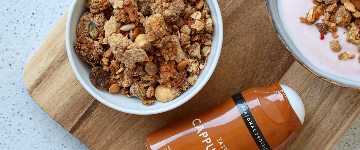 Met dit recept maak je jouw eigen Cappuccino Protein Flakes! Heerlijk als snackje of als topping op jouw favoriete yoghurt of kwark in de ochtend! ☕️