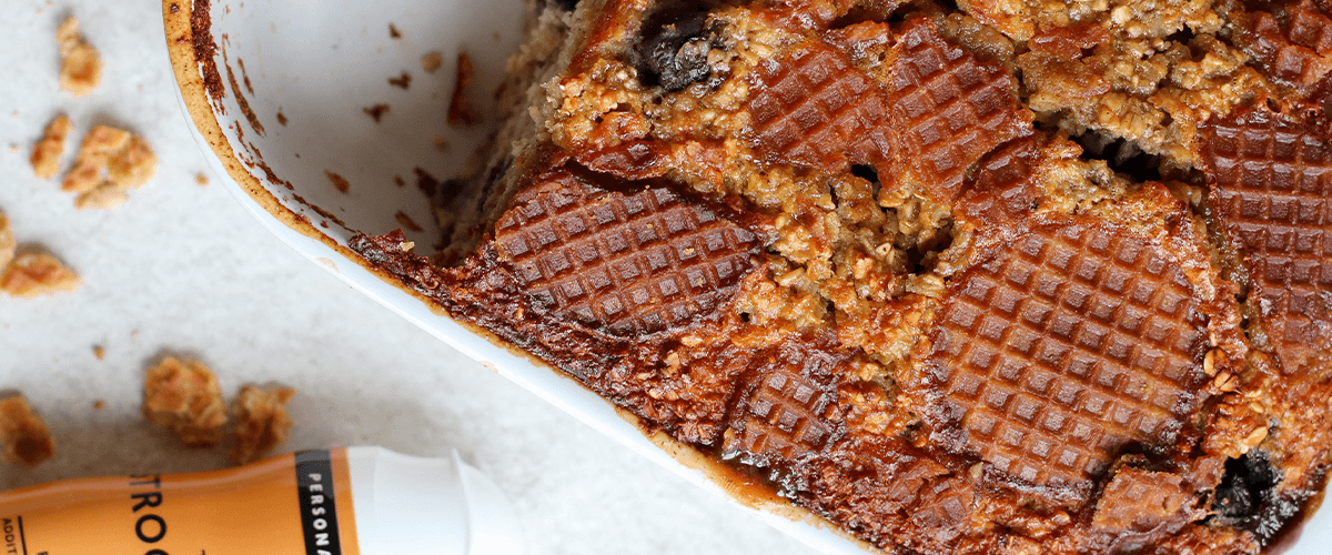 Smikkelen zal je zeker met deze Stroopwafel Baked Oats. Het is makkelijk te maken en ook makkelijk weer weg te werken… 😋