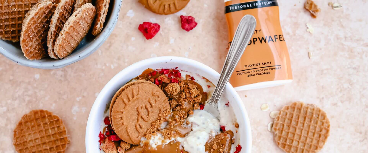 4. Haal uit de koelkast en maak je ontbijt feestje compleet met een Speculoos koekje of een mini stroopwafel!